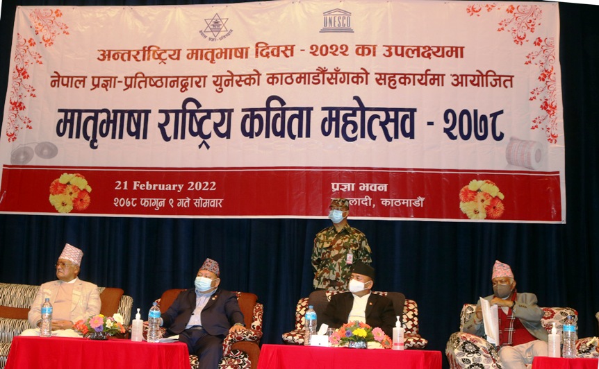 काठमाडौँ, ९ फागुन । उपराष्ट्रपति नन्दबहादुर पुनले भाषा हरेक राष्ट्र र समुदायको मौलिक पहिचान भएको बताएका छन् । अन्तर्राष्ट्रिय मातृभाषा दिवस २०२२ का उपलक्षमा नेपाल प्रज्ञा–प्रतिष्ठानद्वारा संयुक्त राष्ट्रसङ्घीय शैक्षिक, वैज्ञानिक तथा संस्कृतिक सङ्गठन (युनेस्को) काठमाडौँसँगको सहकार्यमा आज आयोजना गरिएको मातृभाषा राष्ट्रिय कविता महोत्सव २०७८ कार्यक्रममा बोल्नु हुँदै उपराष्ट्रपति पुनले ऐतिहासिक कार्य लेखन भाषामार्फत नै हुने भएकाले भाषाको विकास नभए देशको विकास नहुने बताए ।