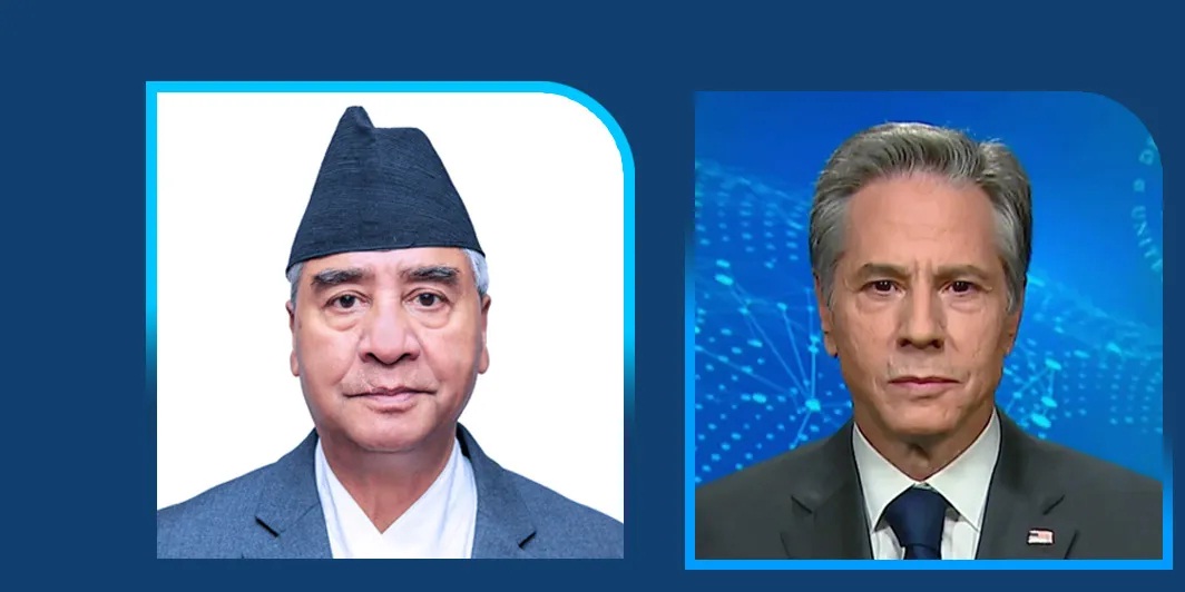 काठमाडौं ,१८ फागुन । प्रधानमन्त्री शेरबहादुर देउवा र संयुक्त राज्य अमेरिकाका विदेशमन्त्री एन्टोनी ब्लिन्केनबीच टेलिफोन वार्ता भएको छ । उनीहरुबीच मङ्गलबार राति नेपालको गरिबी निवारण, विकास, जलवायु परिवर्तनलगायत विषयमा कुराकानी भएको प्रधानमन्त्रीको सचिवालयले जनाएको छ ।