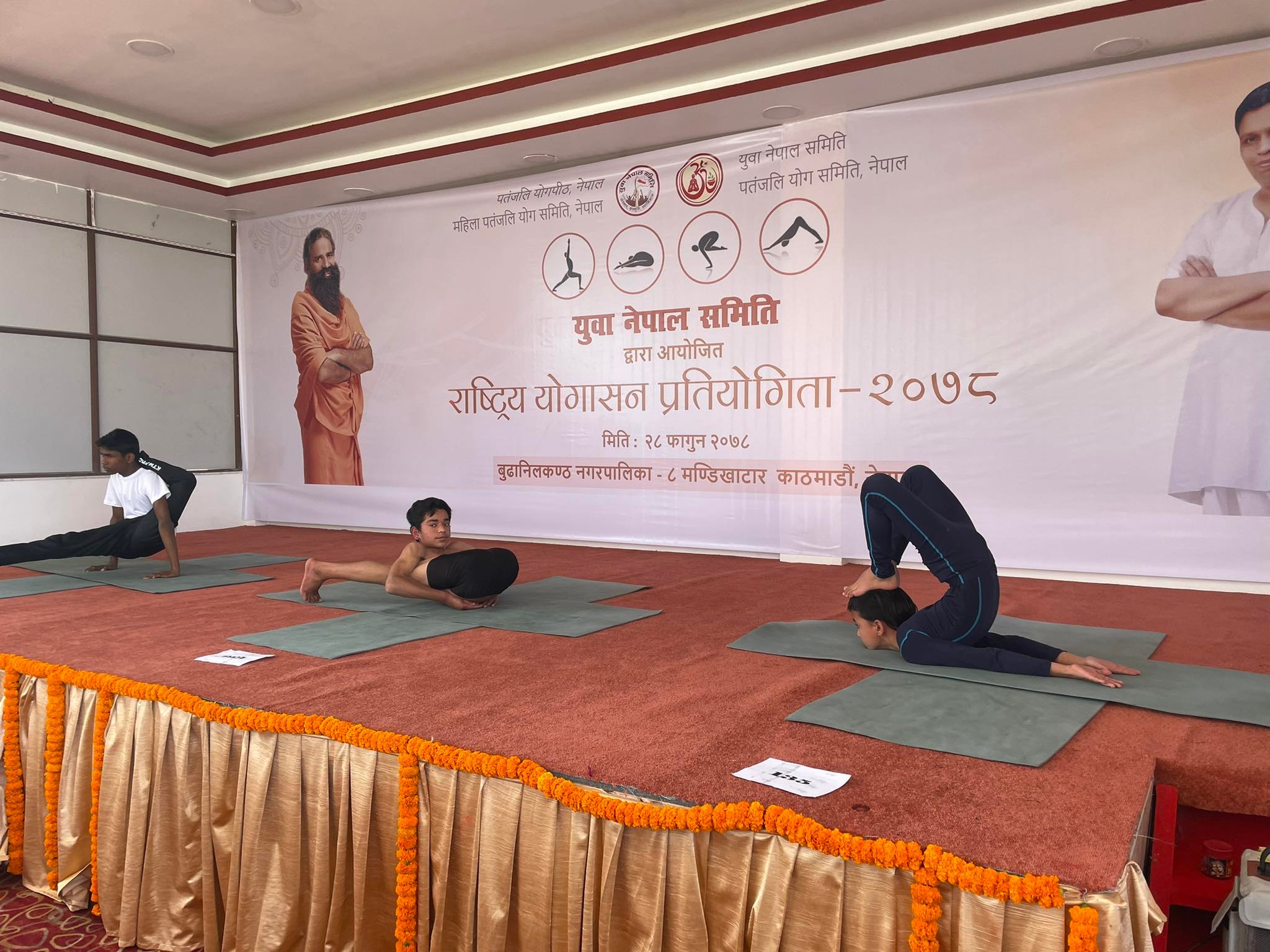 समुह ए अन्तर्गत पद्माशसना, भुनमनाशना, तितिभाशना, हलाशना पर्शोतानाशन, अर्धवद पश्चिमोत्ताशन लगायत, समुह बी मा पुर्ण धनुराशना, पुर्ण भुजंगाशना,पुर्ण उष्ट्राशना, चक्राशना, मत्स्याशना, समुह सीमा पद्मा सर्वांगाशन, पदुमा मयुराशना, नटराजआशन, शिर्षाशन, बक्राशन लगायतका एड्भान्स आसनहरु प्रस्तुत गरिएको थियो । प्रतियोगितामा प्रथम २१ हजार , द्धितीय ११ हजार र तृतीय पुरस्कार ५ हजार १ सय रुपैया प्रदान गरिएको युवा नेपाल समितीले जनाएको छ । पतंजलि योगपीठ नेपाल महिला पतंजली योग समिति नेपाल, पतंजली योग समिती नेपालको संयुक्त आयोजनामा प्रतियोगिता संचालन गरिएको थियो ।
