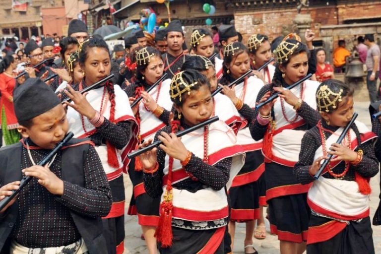 बिस्का जात्राको आठौँ दिन द्यो स्वगं पूजा (भगवानकाे सगुन पुजा) का अवसरमा परम्परागत पोशाकमा सजिएर बाँसुरी बजाइ नगर परिक्रमा गर्दै बाँसुरी खलः।