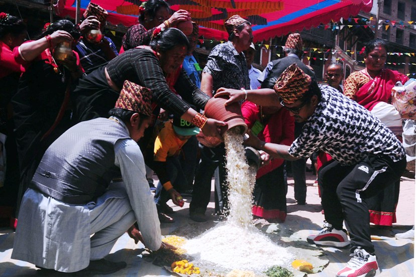 बिस्का जात्राको आठौँ दिन आज भक्तपुरमा द्यो स्वगं पूजा गरियाे