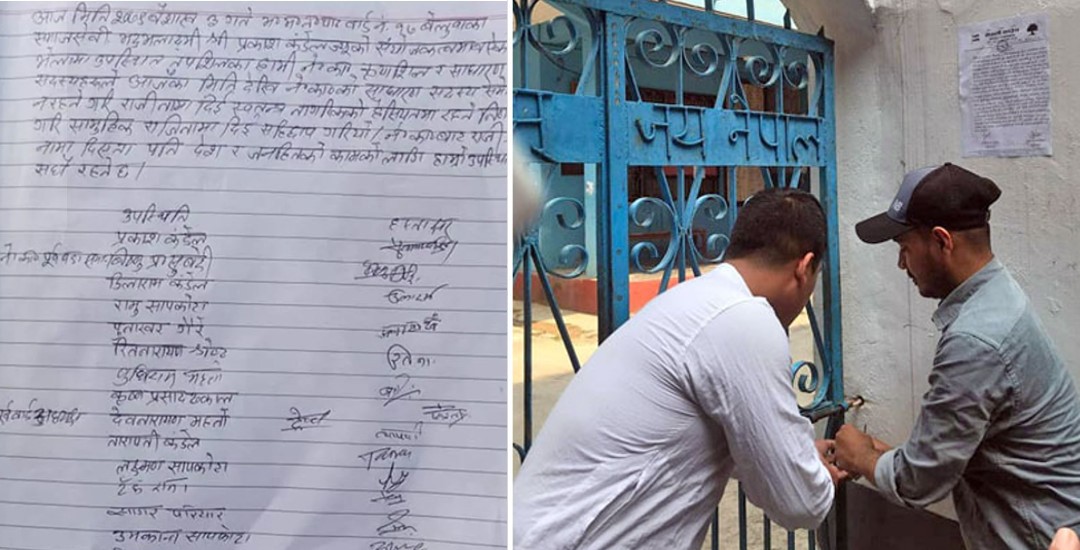 प्रधानमन्त्रीसमेत रहेका सभापति शेरबहादुर देउवाको निर्णयप्रति आपत्ति जनाउँदै चितवन जिल्ला सभापति राजेश्वर खनालको कार्यकक्षमा शुक्रबार तालाबन्दी गरिएको छ ।