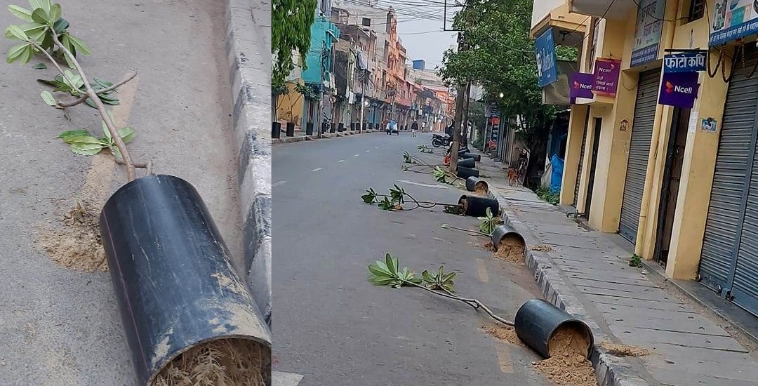 वातावरणा संरक्षण र हरियालीका लागि सडकपेटीमा बोटबिरुवा र गमला थिए । तर, बुधबार बिहान सडकमा ढालिएको अवस्थामा फेला परेका हुन् ।