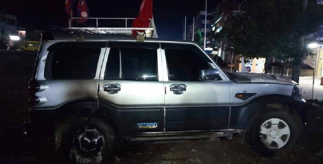 वीरेन्द्रनगरकी उपप्रमुख उम्मेदवार ढकाल चढ्ने गाडीमा आगजनी