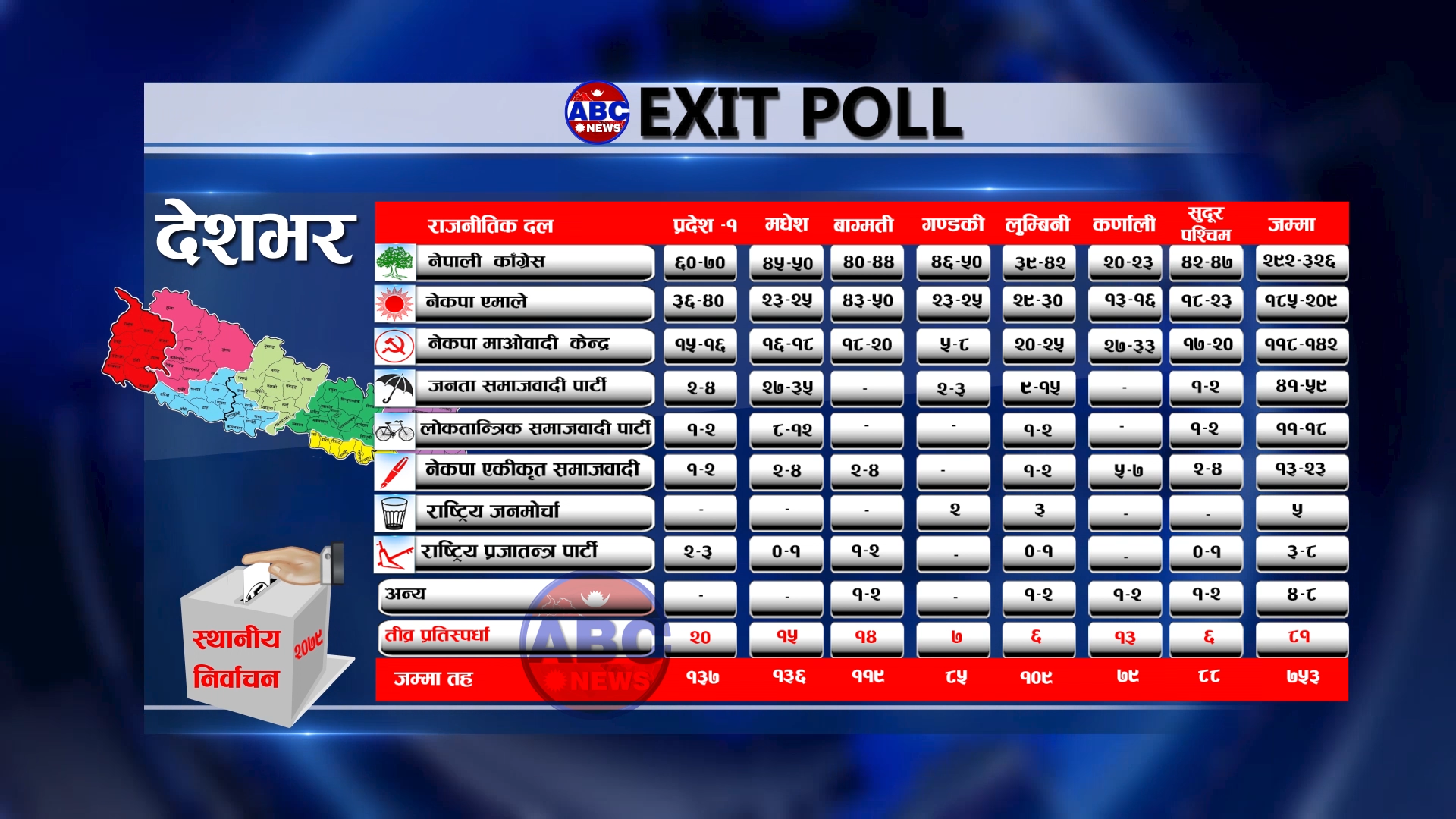 - एबीसी टेलिभिजन र नेपालपेजको एक्जिटपोल अनुसारकै नतिजा-