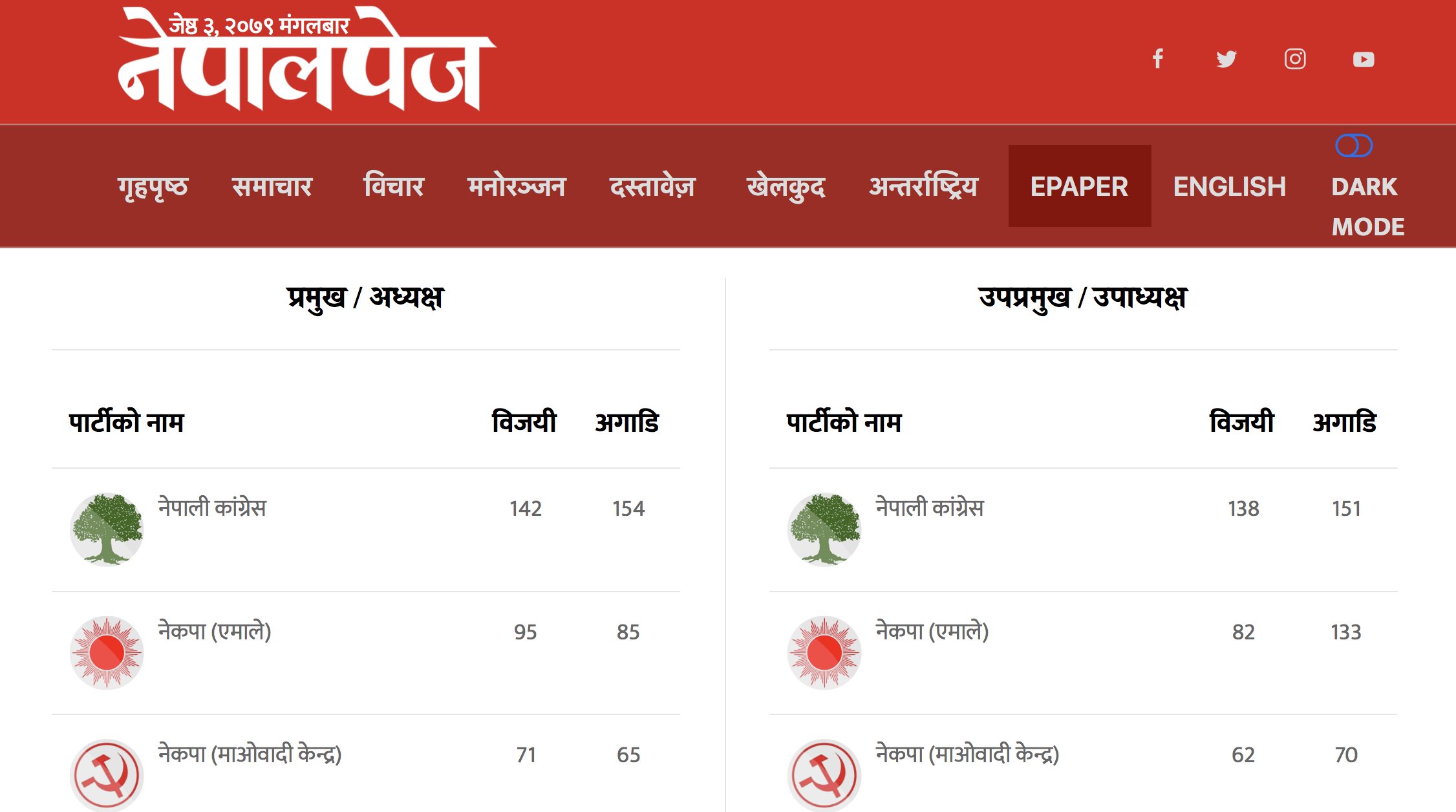 सुदूरपश्चिमको दार्चुलामा एमालले ५ र माओवादीले ४ वटा पालिका जितेको छ ।