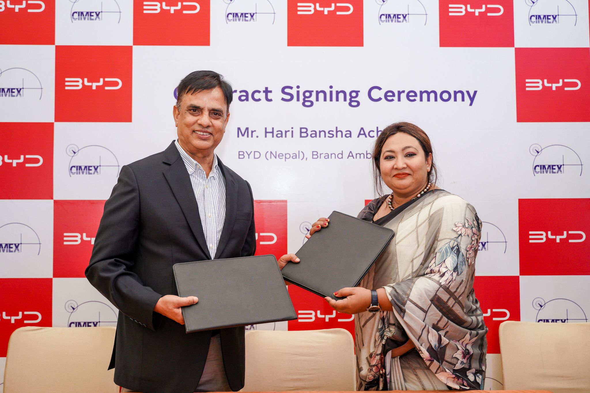सो सम्बन्धी सम्झौतामा साइमेक्स इंक नेपाल र हरिवंश आचार्यबीच शनिबार हस्ताक्षर भएको छ । बिवाइडीद्वारा निर्मित नयाँ इलेक्ट्रिक भेइकल ‘एटो थ्री’को व्यापार प्रवद्र्धनका लागि आचार्यसँग सहकार्य भएको साइमेक्स इंकले प्रेस विज्ञप्तिमा जनाएको छ । साइमेक्स इंकसँग ब्राण्ड एम्बेसडर सम्झौतापछि समारोहमा बोल्दै वरिष्ठ कलाकार आचार्यले भने –‘बढ्दो सवारी प्रदूषणले मानव स्वास्थ्यमा ठूलो असर पारिरहेको छ र, जलवायु परिवर्तनले पृथ्वीको वातावरणलाई असन्तुलित बनाइरहेको छ । यस्तो बेला इलेक्ट्रिक भेइकल कम्पनी बिवाइडीसँग सहकार्य गर्न पाउँदा खुशी लागेको छ । , ‘बिवाइडीसँगको मेरो सहकार्यले नेपालका सडकहरुमा वातावरणमैत्री विद्युतीय सवारी साधनको संख्या बढोस्’ उनले भने । वरिष्ठ कलाकार आचार्य एउटा कलाकार मात्र नभई सामाजिक अभियन्ता भएकोले स्वच्छ, स्वस्थ वातावरण निर्माणमा उनसँगको सहकार्य सफल हुने विश्वास साइमेक्स इंकले लिएको छ ।