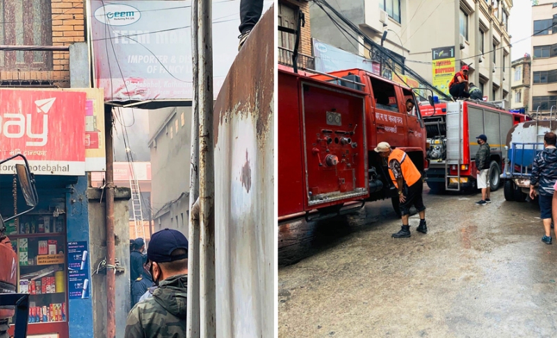 आगलागी नियन्त्रणका लागि काठमाडौं महानगरपालिकाको सहित ३ वटा दमकल पुगेको प्रहरीले जनाएको छ ।