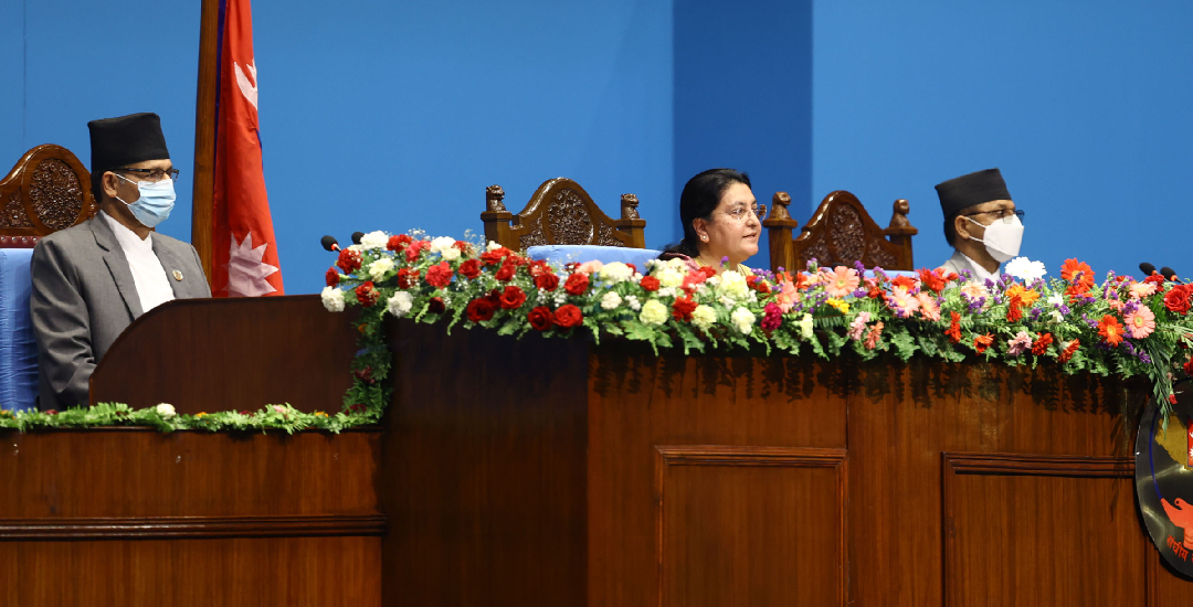मंगलबार राष्ट्रपति विद्यादेवी भण्डारीले संघीय संसदको दुवै सदनलाई संयुक्त रुपमा सम्बोधन गर्दै बजेटको नीति तथा कार्यक्रम सार्वजनिक गरेकी हुन् ।