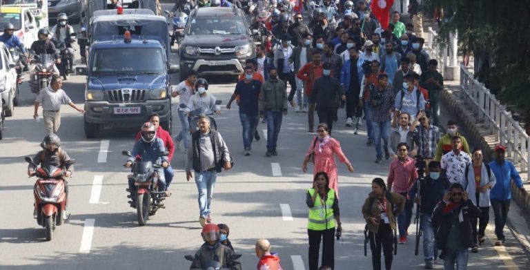 सभागृहबाट सुरु भएको र्‍याली भद्ररकाली, त्रिपुरेश्वर, माइतीघर–बबरमहल, बिजुली बजार, युएन पार्क, शान्तिनगर, तिनकुने, कोटेश्वर, जडीबुटी, सिनामंगल, एयरपोर्ट, तिलगंगा, गौशाला, चावहिल, महाराजगञ्ज, सामाखुसी, नयाँ बसपार्क, बालाजु, स्वयम्भु, सितापाइला, कलंकी, बल्खु, कुलेश्वर, कालीकाम, टेकु, त्रिपुरेश्वर भएर रत्नपार्कस्थित खुलामञ्चमा आएर सभामा परिणत हुने छ ।