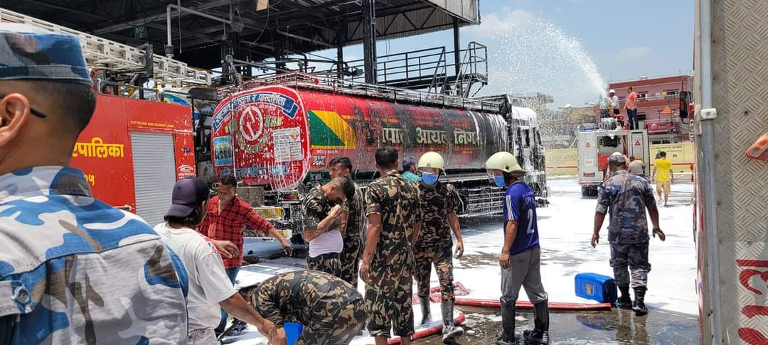 लु २ ख २६५६ र लु २ ख ५६८५ नम्बरको ट्यांकरबाट तेल खनाउने क्रममा आगलगी भएको प्रहरीले जनाएको छ ।