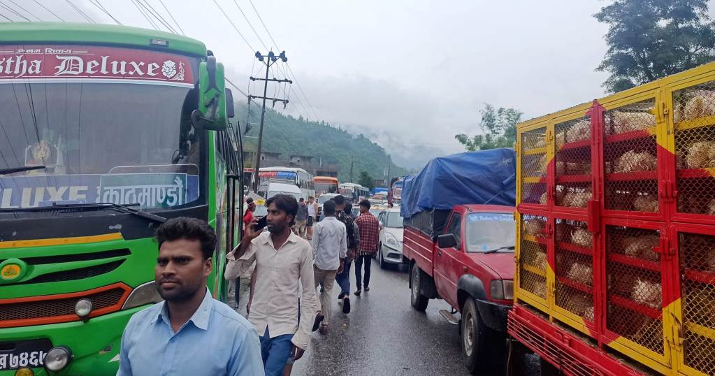 पहिरोको कारण सवारी साधनहरू नारायणगढ, आँबुखैरेनी, मौवाखोला, गजुरी आसपासको क्षेत्रमै रोकिएका छन् ।