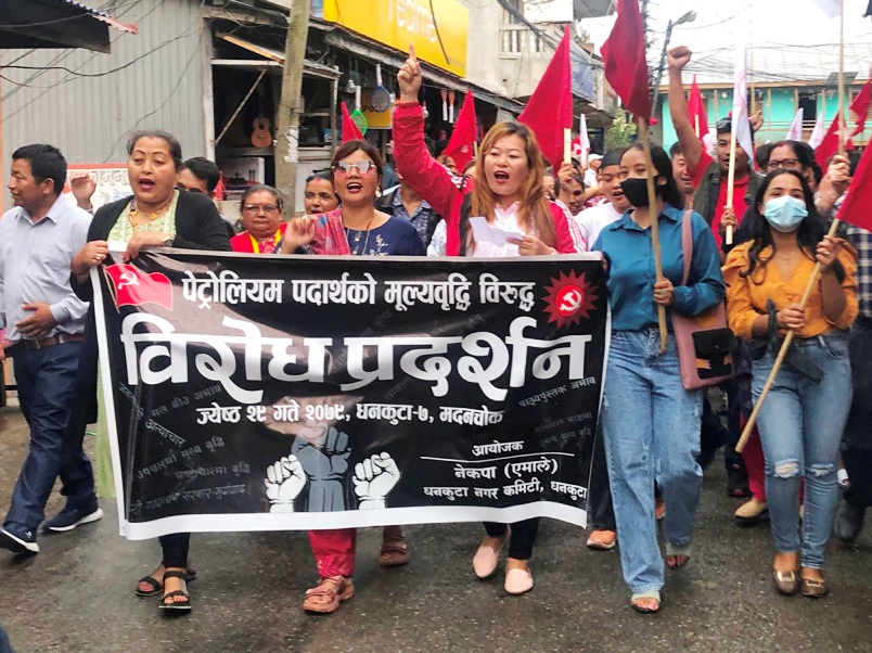 धनकुटा, २९ जेठ । सरकारले निरन्तर मूल्यवृद्धि गरेको भन्दै नेकपा एमाले आइतबार धनकुटामा विरोध प्रदर्शन गरेको छ ।