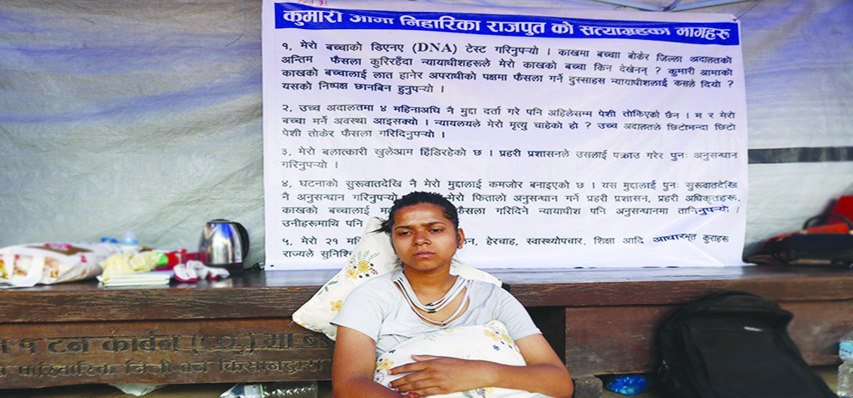 काठमाडौं, १ असार । आफूमाथि बलात्कार भएको र त्यसबाट जन्मेको बच्चा २१ महिना हुँदासमेत न्याय नपाएको भन्दै काठमाडौंमा ६ दिनदेखि आमरण अनशनमा बसेकी महोत्तरीकी निहारिका राजपुतको विषय संसदमा प्रवेश गरेको छ ।