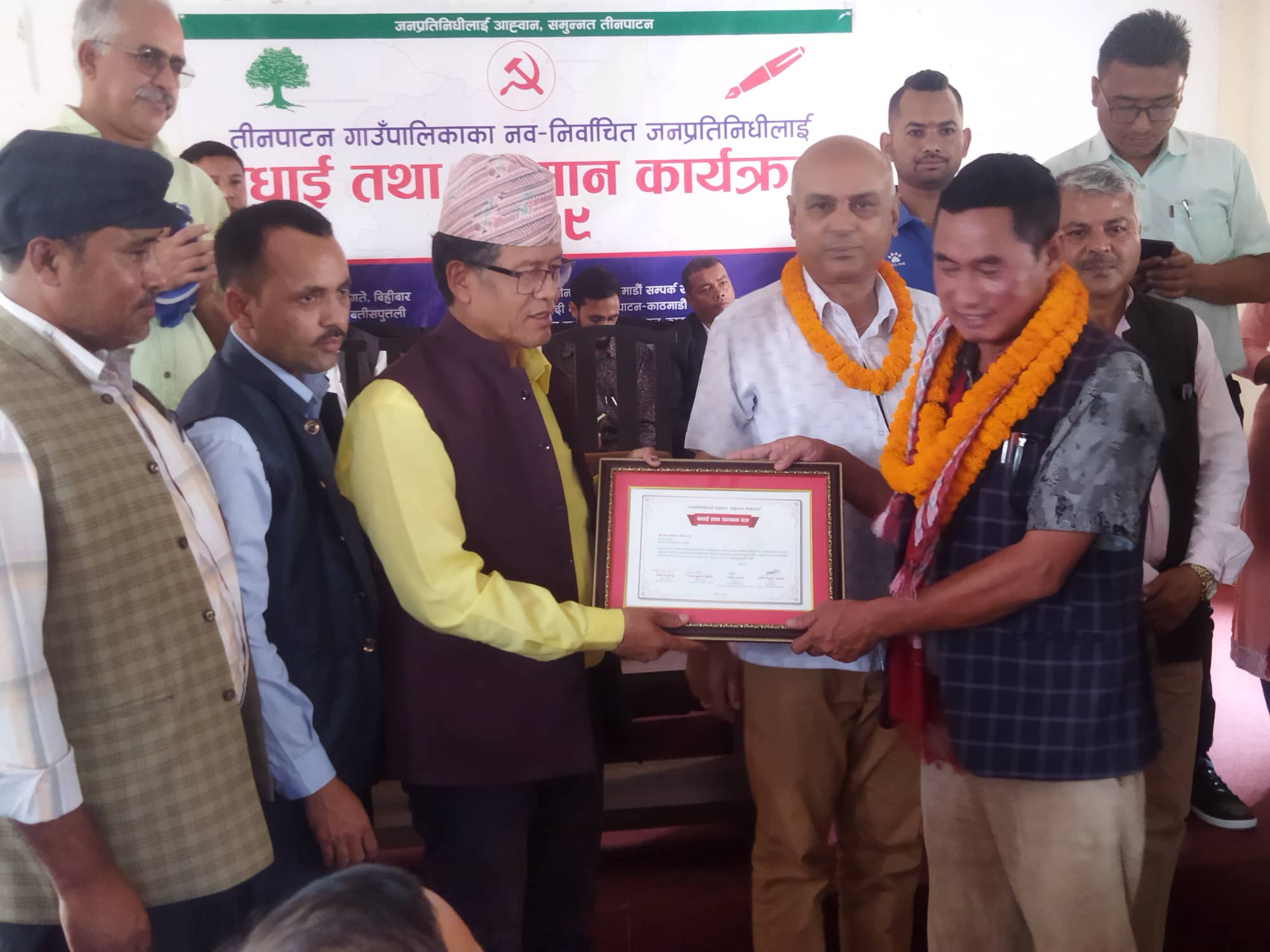 नेपाली कांग्रेस, नेकपा माओवादी केन्द्र र नेकपा एकीकृत समाजवादी तिनपाटन–काठमाडौं समितिले विहीबार आयोजित बधाई तथा सम्मान कार्यक्रममा जनप्रतिनिधिहरुलाई सम्मान गरिएको हो ।
