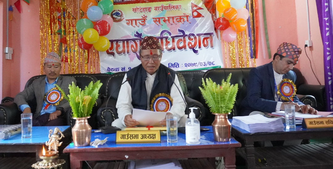खोटाङ । खोटाङको खोटेहाङ गाउँपालिकाले साढे ५५ करोड बराबरको बजेट तथा कार्यक्रम ल्याएको छ । बुधबार सम्पन्न ११ औं गाउँसभामार्फत खोटेहाङले आर्थिक वर्ष २०७९/८० का लागि ५५ करोड ४३ लाख ९३ हजार १२० रुपैयाँ बराबरको बजेट पारित गरेको छ ।