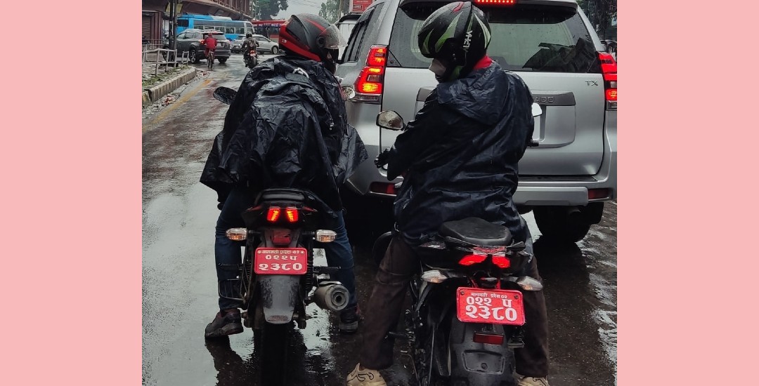 दुवै मोटरसाइकलमा एउटै नम्बर थिए । पानी परिरहेकाले सवारी चालकले ‘रेनकोट’ लगाएका थिए । तर, मोटरसाइकलमा बागमती प्रदेश ०२ ०२२प २३८० नम्बर थियो ।