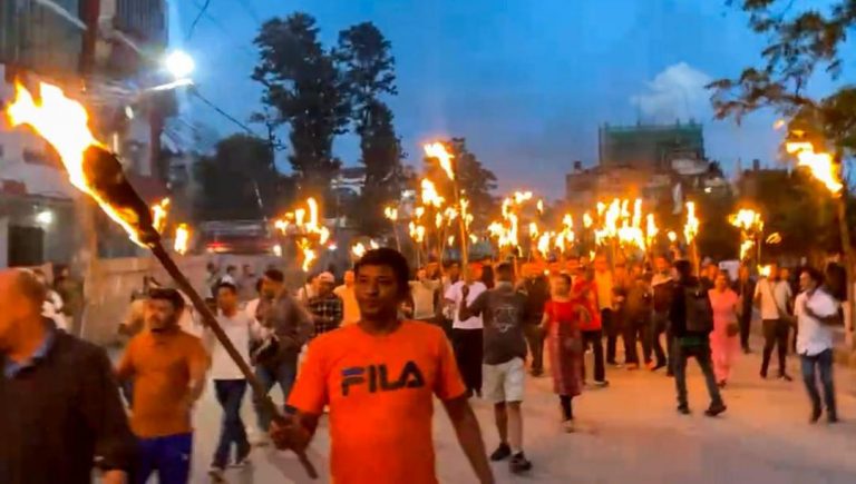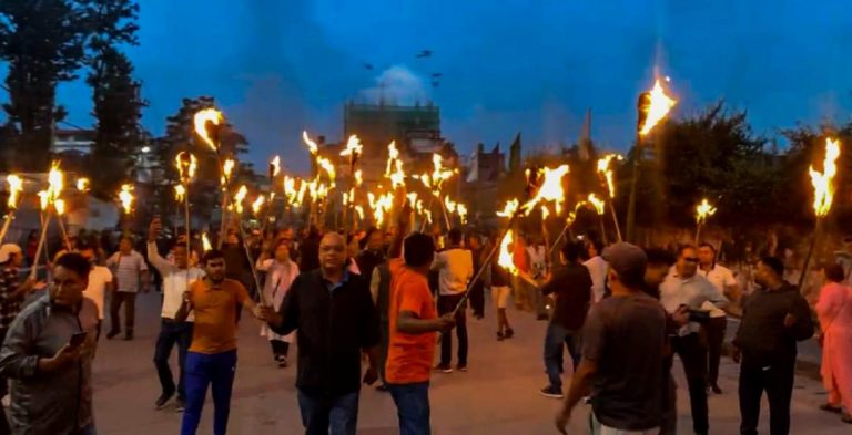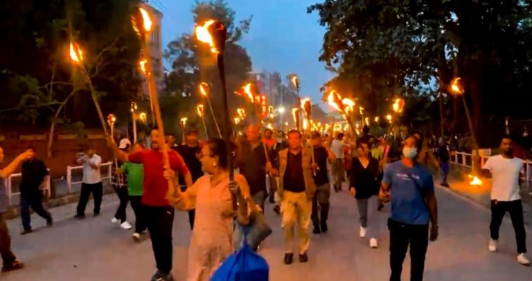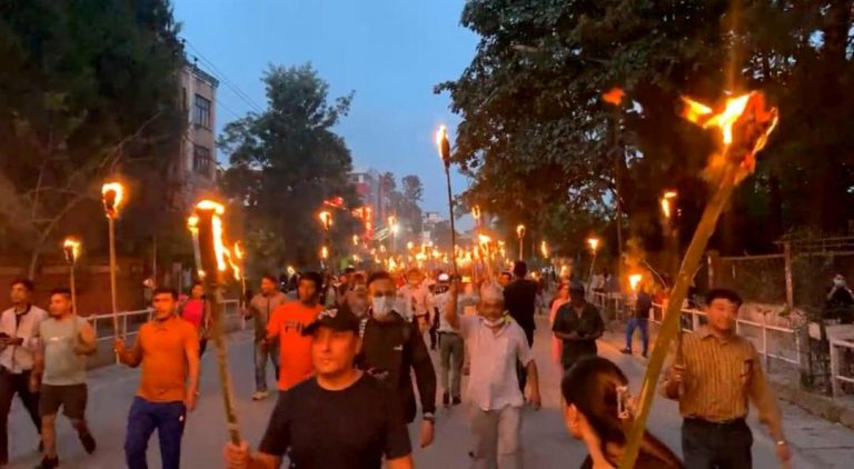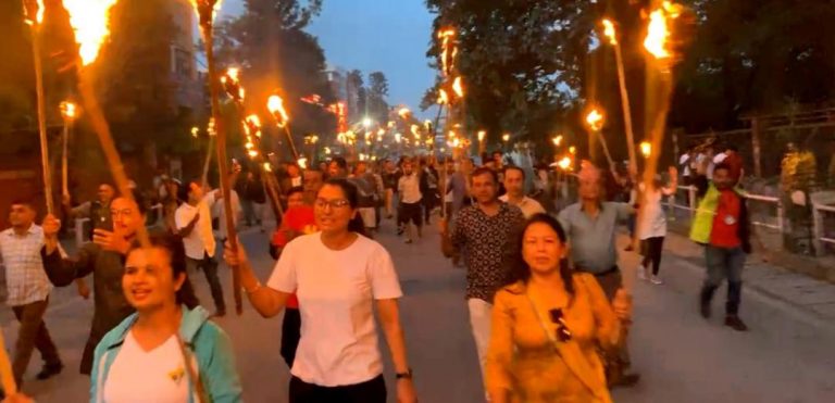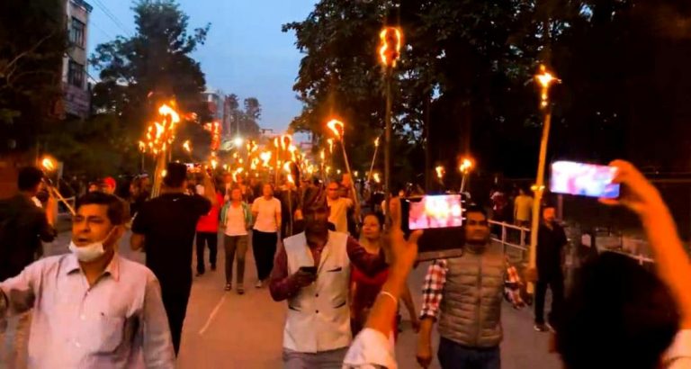 काठमाडौँ । राष्ट्रिय प्रजातन्त्र पार्टी (राप्रपा)ले सरकारको विरोधमा मसाल जुलुस प्रदर्शन गरेको छ ।