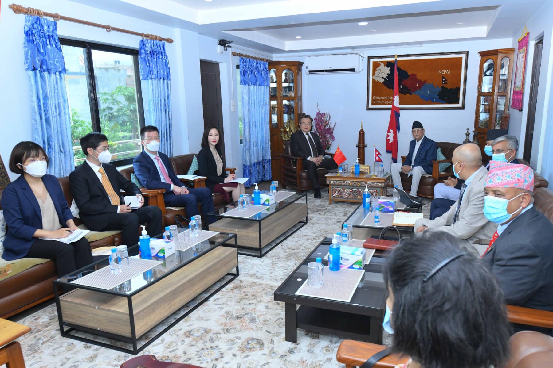 ओलीलाई बालकोटस्थित उनको निवासमा पुगेर लिउले भेट गरेका हुन् ।भेटवार्तामा एमाले नेताहरू राजन भट्टराई , बिष्णु रिमाल, प्रदिप ज्ञवाली, ईश्वर पोख्रेल लगायत सहभागी छन् ।
