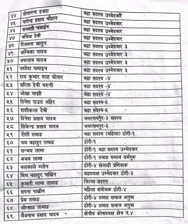 जसपा पर्साका दुई जना केन्द्रीय सदस्यसहित ६९ जनाले पार्टी परित्याग गरेका छन् ।