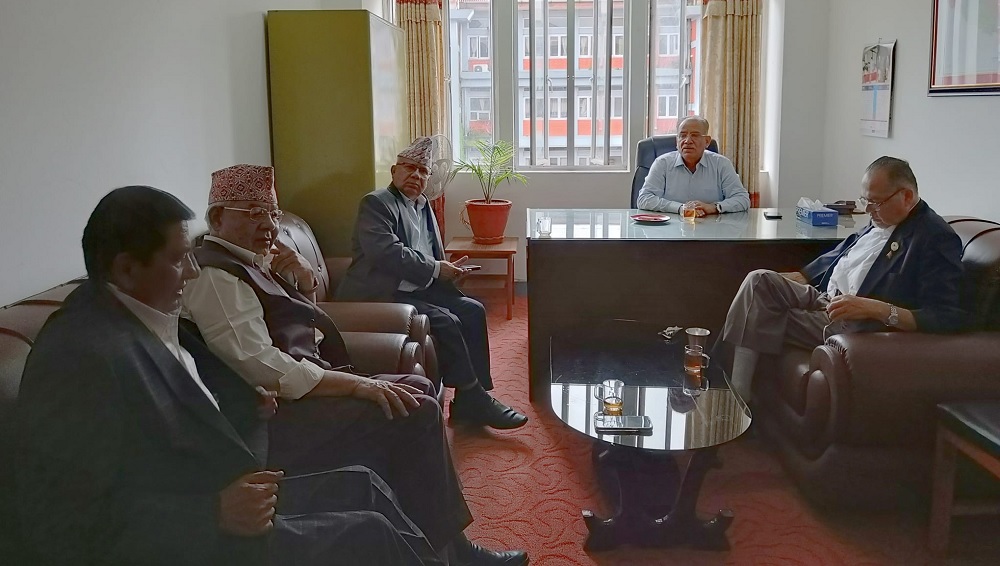 काठमाडौँ । तत्कालीन नेपाल कम्युनिस्ट पार्टी (नेकपा) कालका बहुमत सचिवालय सदस्य मंगलबार दिउँसो सिंहदरबारमा भेला भए । असार १९ गते अहिले नेकपा एकता राष्ट्रिय अभियान नामक पार्टी गठन गरेका तत्कालीन नेकपाका सचिवालय सदस्य वामदेव गौतमको पहलमा बैठक बसेको थियो । जसको निरन्तर्ता मंगलबारको बैठक भएको नेताहरुले बताएका छन् ।