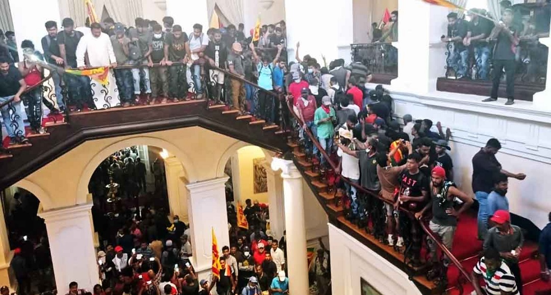 जुलाई ९ मा सरकार विरोधी प्रदर्शनकारीहरूले पूर्वराष्ट्रपति गोटाबाया राजापाक्षेको आधिकारिक निवास र पूर्व प्रधानमन्त्री रनिल विक्रमासिंघेका निजी घर कब्जा गरेका थिए । प्रदर्शनकारीले विक्रमासिंघेको निजी घरमा आगजानी गरेका थिए ।