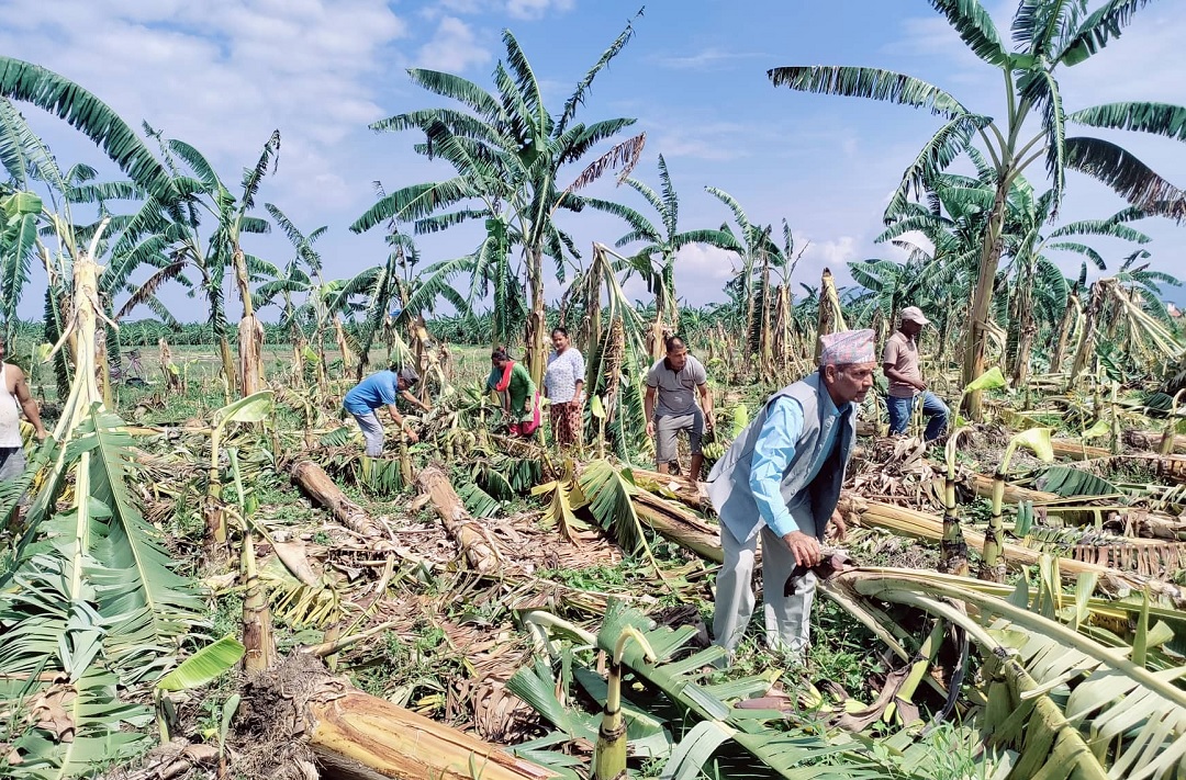 हुरीले भर्खर पसाएको र पाक्ने बेला भएको केरा नष्ट गरेको किसानहरुले बताएका छन् । केरा पकेट क्षेत्रको रुपमा रहेको निजगढमा एक बिघा जमिनमा किसानले एक सिजनमा ४ देखि ६ लाखसम्म आम्दानी लिँदै आएका थिए ।