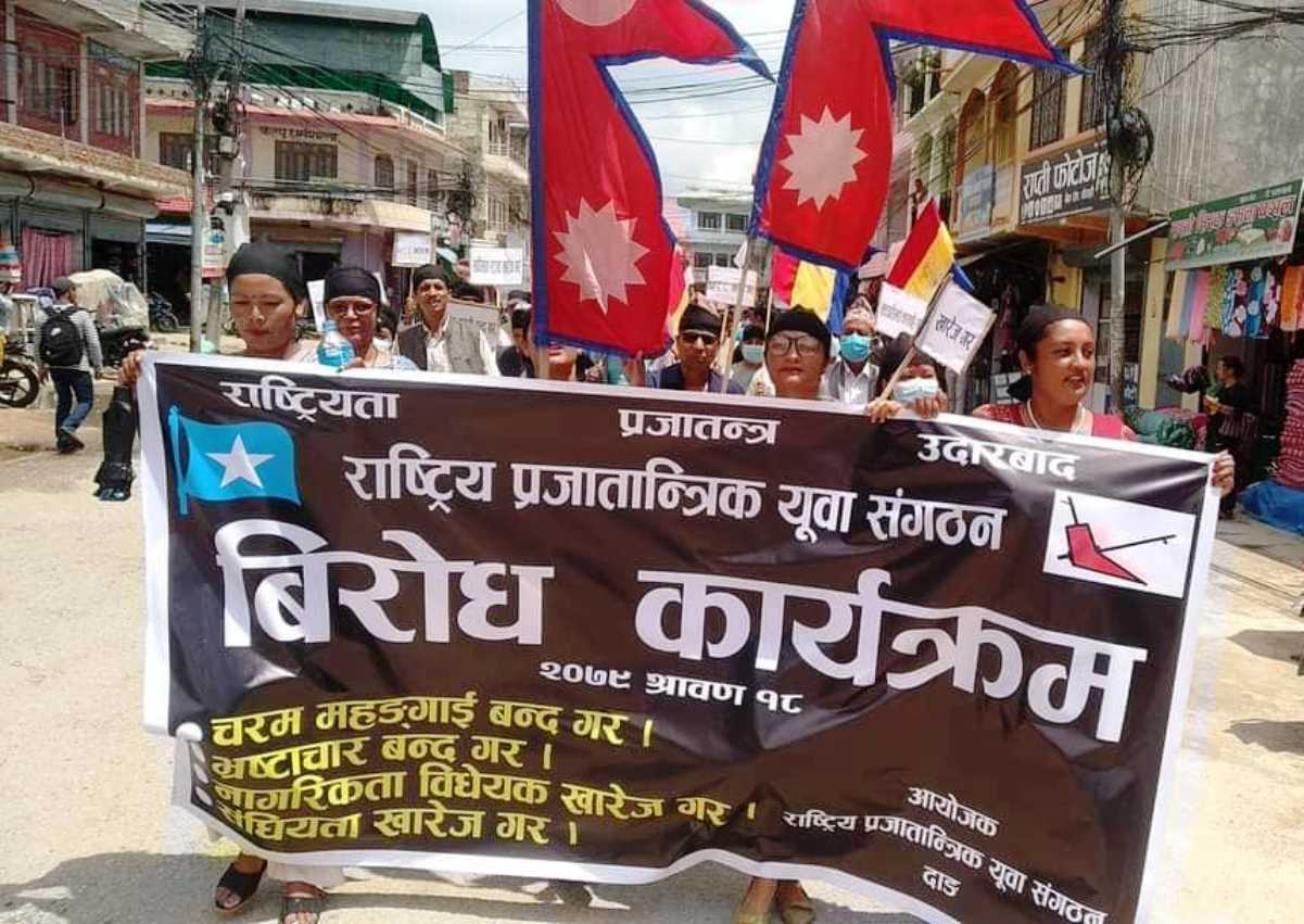 हिन्दुराष्ट्र र राजसंस्थाको पुनःस्थापना, संघीयताको खारेजी, राष्ट्र प्रमुखको रुपमा राजा, जनताबाट प्रत्यक्ष निर्वाचित कार्यकारी प्रधानमन्त्री, पूर्ण समानुपातिक निर्वाचन प्रणालीको व्यवस्था, आगामी प्रदेश र संघको निर्वाचनलाई धाँधलीरहित र विश्वसनीय बनाउन निश्पक्ष चुनावी सरकार गठन लगायत महंगी, बेरोजगारी, किसान, मजदुरका समस्या समाधानका विभिन्न २२ सुत्रीय माग राखी राप्रपाले प्रधानमन्त्रीलाई ज्ञापनपत्र बुझाएको थियो । सोही माग पूरा गराउन दबाबमुलक कार्यक्रम जारी रहेको उनले बताए ।