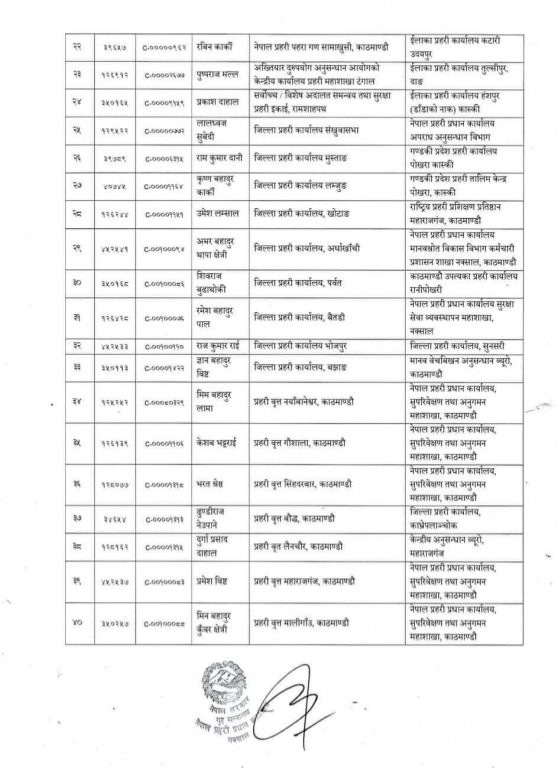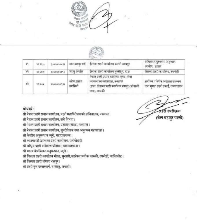 नेपाल प्रहरीका ४३ डीएसपीको सरुवा (सूचीसहित)