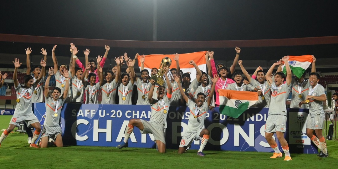 काठमाडौँ । गुरकिरत सिंहको चार गोलप्रेरित आयोजक भारतले यू–२० साफ च्याम्पियनसिपको उपाधि जितेको छ । शुक्रबार राति भुवनेश्वरस्थित कालिंगा रंगशालामा भएको फाइनलमा भारतले बंगलादेशलाई ५–२ ले पराजित गर्दै उपाधि जितेको हो ।