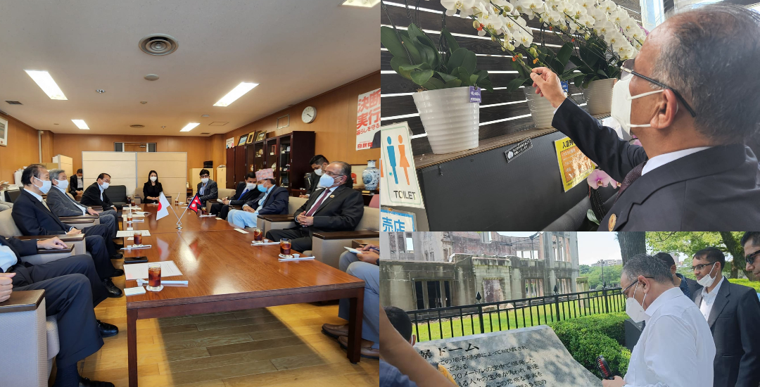 २. २०७९ श्रावण २२ गते (अगष्ट ७, २०२२) का दिन बिहान अध्यक्ष कमरेडले दोस्रो विश्व युद्धमा आणविक बमले ध्वस्त पारिएको हिरोसिमा सहरमा अवस्थित शान्ति स्मृति संग्रहालयको अवलोकन गर्नुका साथै युद्ध पछिको पुनर्निर्माणका बारेमा जानकारी लिनुभयो । सोही दिन साँझ नेपाली जनप्रगतिशील मञ्च, जापानले टोकियोमा आयोजना गरिएको ‘समृद्ध नेपालको आधार, आर्थिक क्रान्तिमा प्रवासी नेपालीको सरोकार’ विषयक अन्तरक्रिया कार्यक्रमलाई प्रमुख अतिथिको रुपमा सम्बोधन गर्नुभयो ।