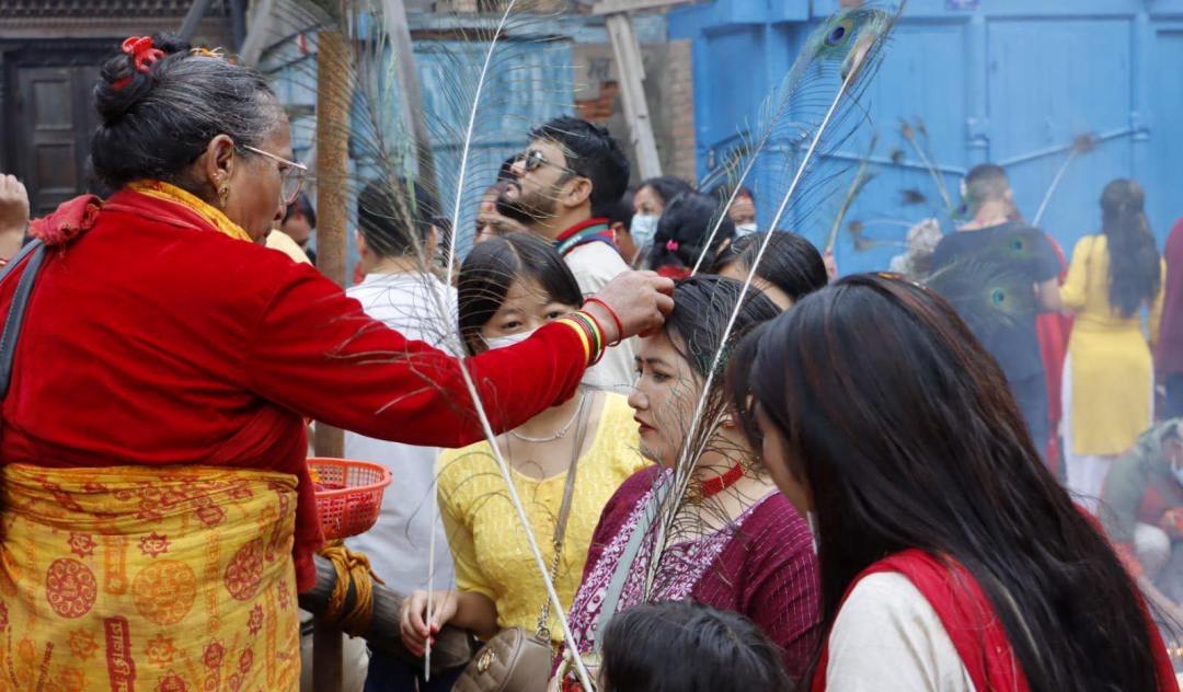 श्रीकृष्ण मन्दिरमा पूजा अर्चना लागि बिहानैदेखि श्रद्धालुको घुइँचो लागेको छ।