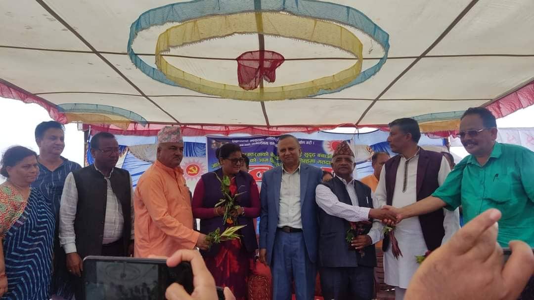 नेकपा एमाले जिल्ला कमिटी सिन्धुलीले मरिण गाउँपालिकामा आयोजना गरेको बृहत् सभामा सम्बोधन गर्न पुगेका एमाले माहासचिव शंकर पोख्रेलले स्वागत गरेका हुन्।