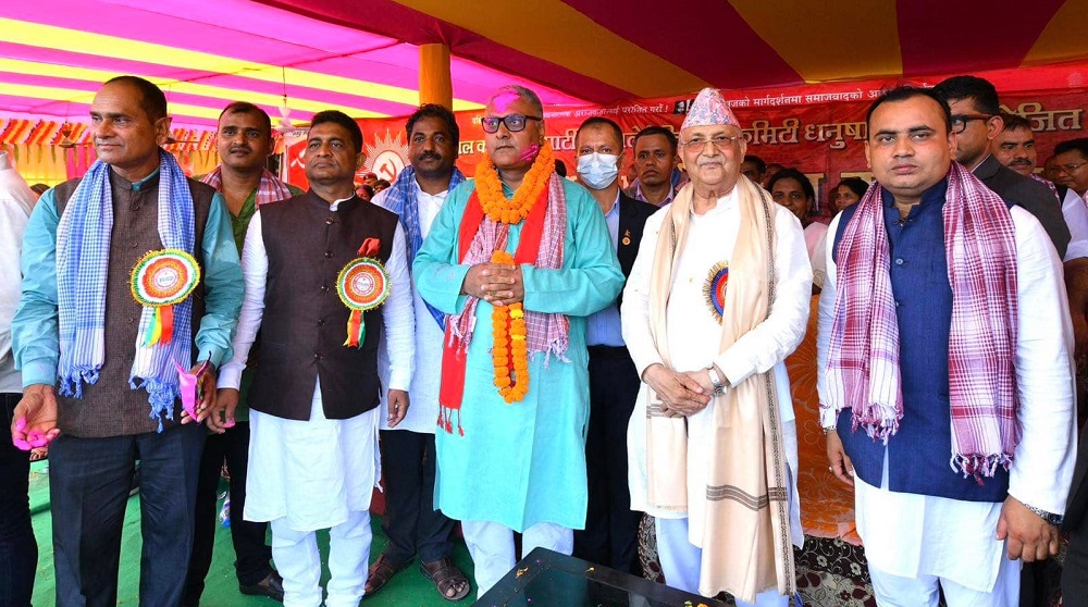 धनुषाको विदेह नगरपालिकास्थित तिनकौरिया चोकमा एमालेले आयोजना गरेको पार्टी प्रवेश कार्यक्रम अध्यक्ष केपी ओलीले अरगरियालाई पार्टीमा स्वागत गरे।