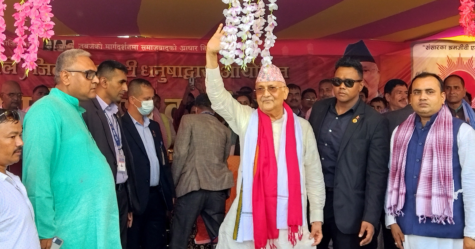 जनकपुरमा चेल चढेर मैनाधपुर स्टेसनमा ओर्लिएर अध्यक्ष ओली त्यहाँबाट गाडीमै कार्यक्रम स्थलमा पुगेका थिए।