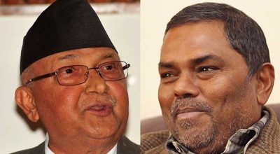 काठमाडौं २१ असोज। । स्थानीय चुनावलगत्तैबाट एमाले अध्यक्ष केपी शर्मा ओलीसंगको सम्वादमा रहेका जसपा अध्यक्ष उपेन्द्र्र यादवले विहीबार सत्तागठबन्धनलाई चक्मा दिएका छन् । यादवले शुरुमै कांग्रेसलाई शर्त राखेका थिए – लोसपा गठबन्धनमा हुने हो भने जसपा अलग्गिने । यादवको चेतावनीलाई गम्भीरतापूर्वक लिएर गठबन्धनका अरु दलको पनि सुझावमा लोसपालाई कांग्रेसले छाड्न तयार भएको थियो । त्यो … Continue reading एमाले–जसपा गठबन्धनबाट सत्ता गठबन्धनलाई कति घाटा हुन्छ ? (तथ्य यस्तो छ)