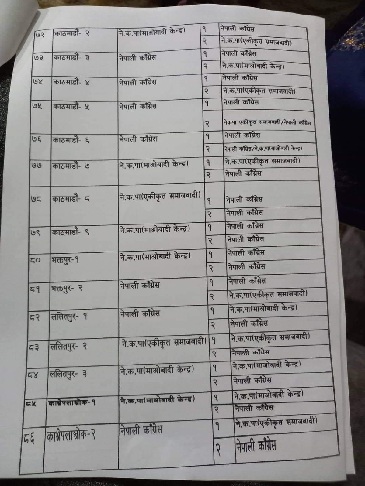 नोट : रुकुम पश्चिम (ख) मा कांग्रेस÷माओवादी दुवै उल्लेख गरिएको छ ।