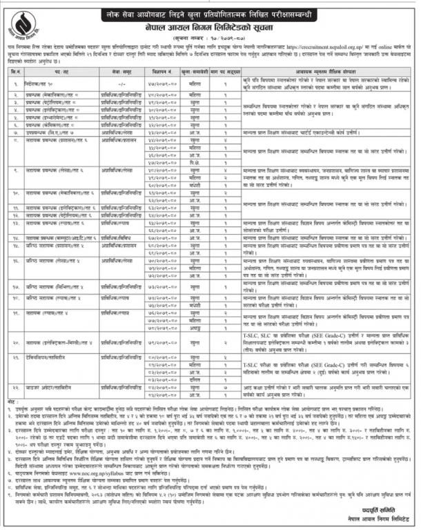 निगमले लोकसेवाबाट परीक्षा लिनेगरी ६० पदमा दरखास्त आह्वान गरेको हो ।