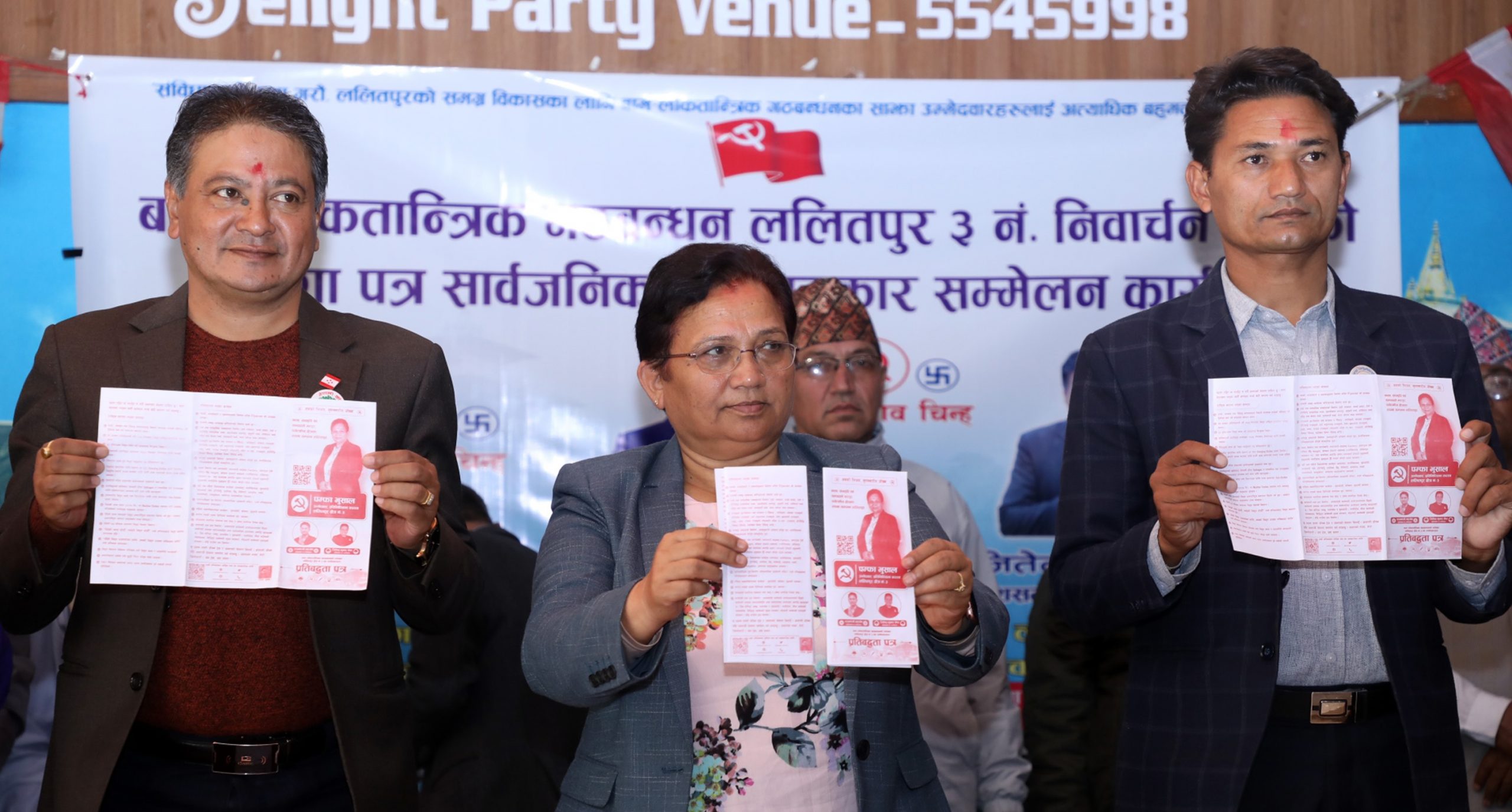 वाम–लोकतान्त्रिक गठबन्धनका तर्फबाट ललितपुर निर्वाचन क्षेत्र नम्बर ३ को उम्मेदवारका रुपमा आज साझा प्रतिबद्धता पत्र सार्वजनिक गर्दै उनले राजनीतिक उपलब्धिको संरक्षणका लागि संयुक्त संघर्ष जारी राख्दै समुन्नत आर्थिक–सामाजिक विकासको महाअभियान सञ्चालन गर्नुपर्ने बताइन्।