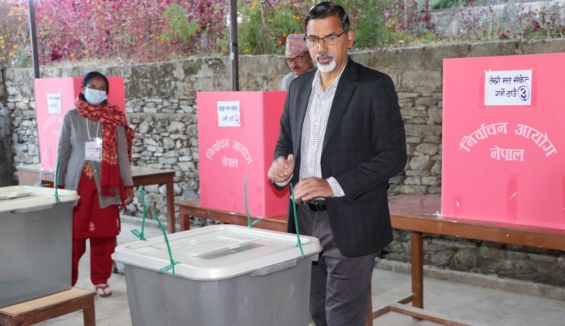 रूकुम पश्चिम, ४ मंसिर । अर्थमन्त्री जनार्दन शर्माले मतदान गरेका छन् । प्रतिनिधिसभा सदस्यका उम्मेदवारसमेत रहेका शर्माले मुसीकोट नगरपालिका–५ सेरीगाउँमा रहेको यमुनानन्द नमुना माविमा रहेको ‘क’ मतदान केन्द्रबाट मतदान गरेका हुन् ।