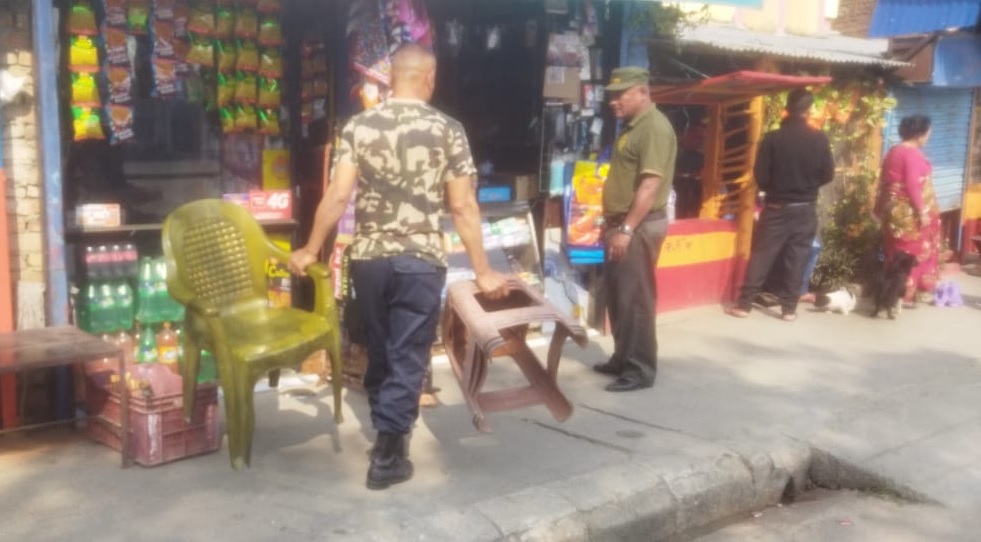 सडक फुटपाथ अतिक्रमण हटाउनका लागि नगरपालिकाले नगर प्रहरी परिचालन गरेको छ । पहिलो पटकका लागि नगर प्रहरी दैनिक खटिएर सडक फुटपाथ अतिक्रमण नगर्न आग्रह गरिरहेका छन् ।