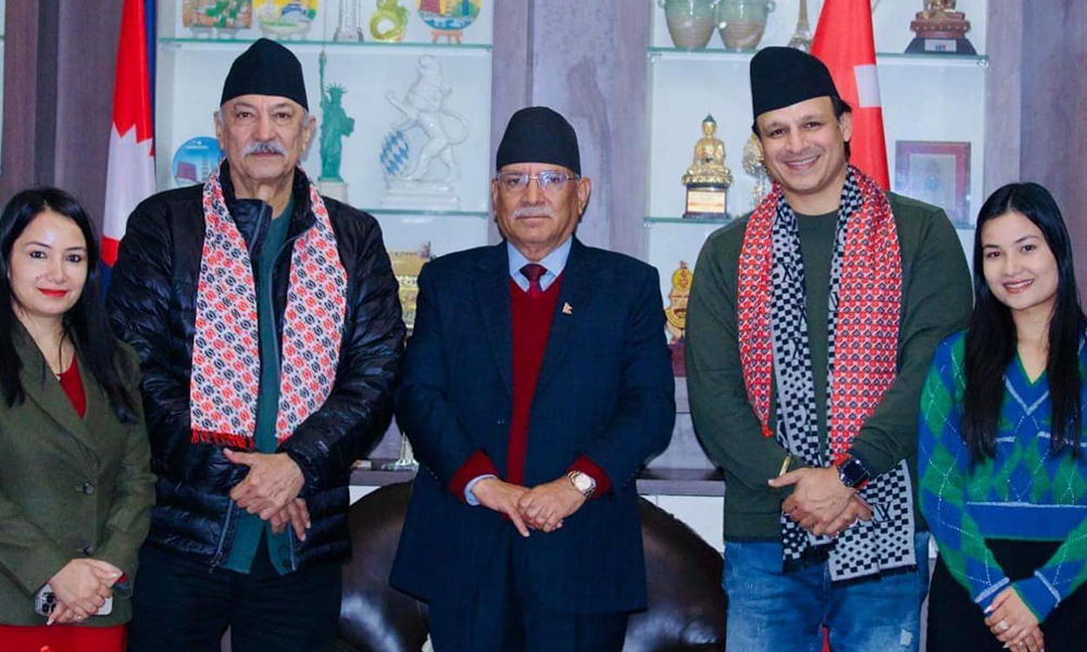 काठमाडौं, २९ मंसिर । नेपाल भ्रमणमा रहेका भारतीय अभिनेता विवेक ओबरायले माओवादी अध्यक्ष प्रचण्डलाई भेटेका छन् । बुबा सुरेश ओबरायसँगै खुमलटार उनले आज प्रचण्डलाई भेटेका हुन् ।