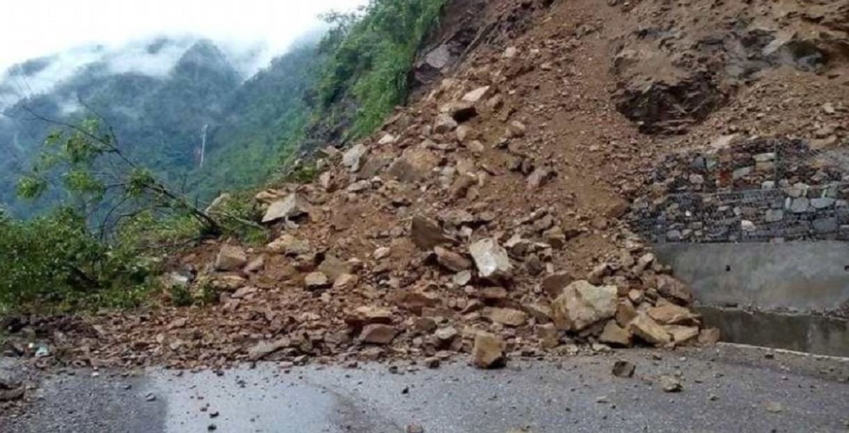 Baitadi, June 25 : The Jai Prithvi Highway has been blocked since last night due to the landslide triggered by continuous rainfall. Landslide at Sribhavar has brought traffic to a halt on the highway.