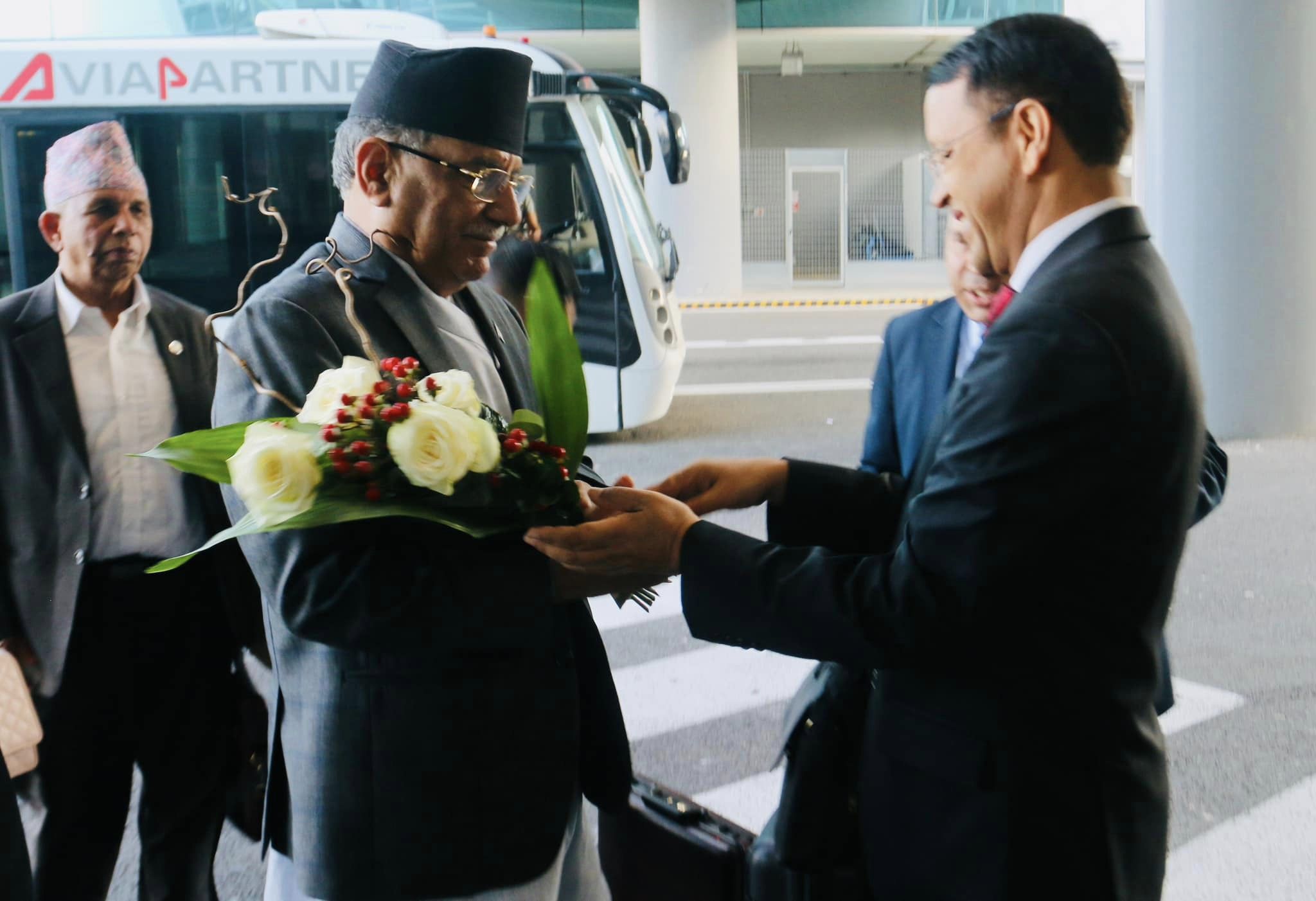 Nepal’s ambassador to Austria Bharat Kumar Regmi and the officials of the Ministry of Foreign Affairs of Italy welcomed the Prime Minister in Rome, said Surya Kiran Sharma, the PM’s Press Coordinator. The Prime Minister is accompanied by his daughter Ms. Ganga Dahal, Minister for Agriculture and Livestock Development Dr. Beduram Bhusal, Member of National Planning Commission Hon. Dr. Jay Kant Raut, and other senior officials of the Government of Nepal.