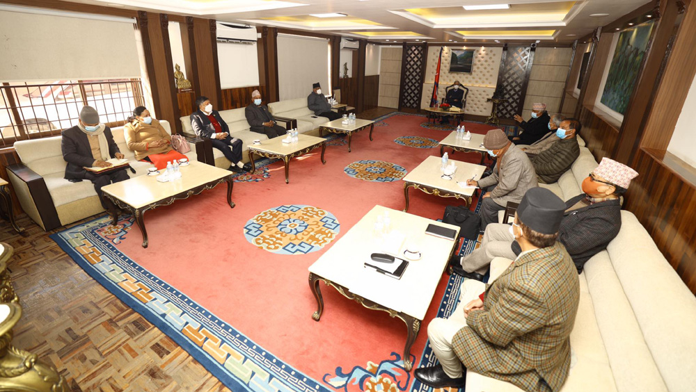 Kathmandu : The top leaders of the ruling parties have held a meeting today to discuss country’s latest political situation and contemporary issues.
