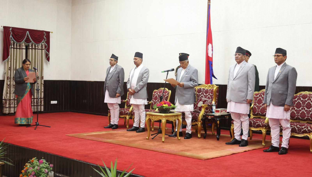 During the swearing-in ceremony, Prime Minister Pushpakamal Dahal Prachanda, Vice President Ramsahay Yadav, Speaker Devraj Ghimire, National Assembly Chairman Ganesh Timilsina, and others were present.