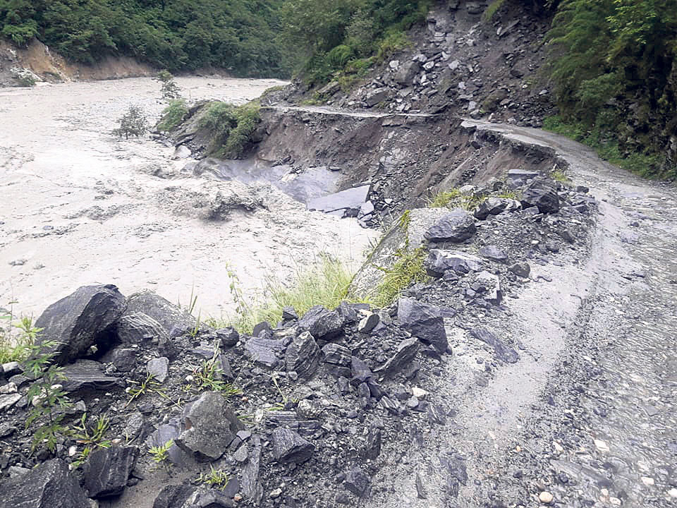 Dhorpatan (Baglung), Aug 21: The Jomsom-Korala road has been obstructed by a local flooded river. The road under the national pride Kaligandaki corridor has been disrupted at Tanbe of Barangung Mukti Rural Municipality in Mustang district, said Chief District Officer Anup KC. As a result, traffics operating between Jomsom-Korala and Upper Mustang-Jomsom-Pokhara-Kathmandu have come to a halt, he said. Particularly, domestic and foreign tourists returning to Upper Mustang have been affected the most by the road obstruction, said local people. Efforts are on to clear and restore the road by this evening, said KC.