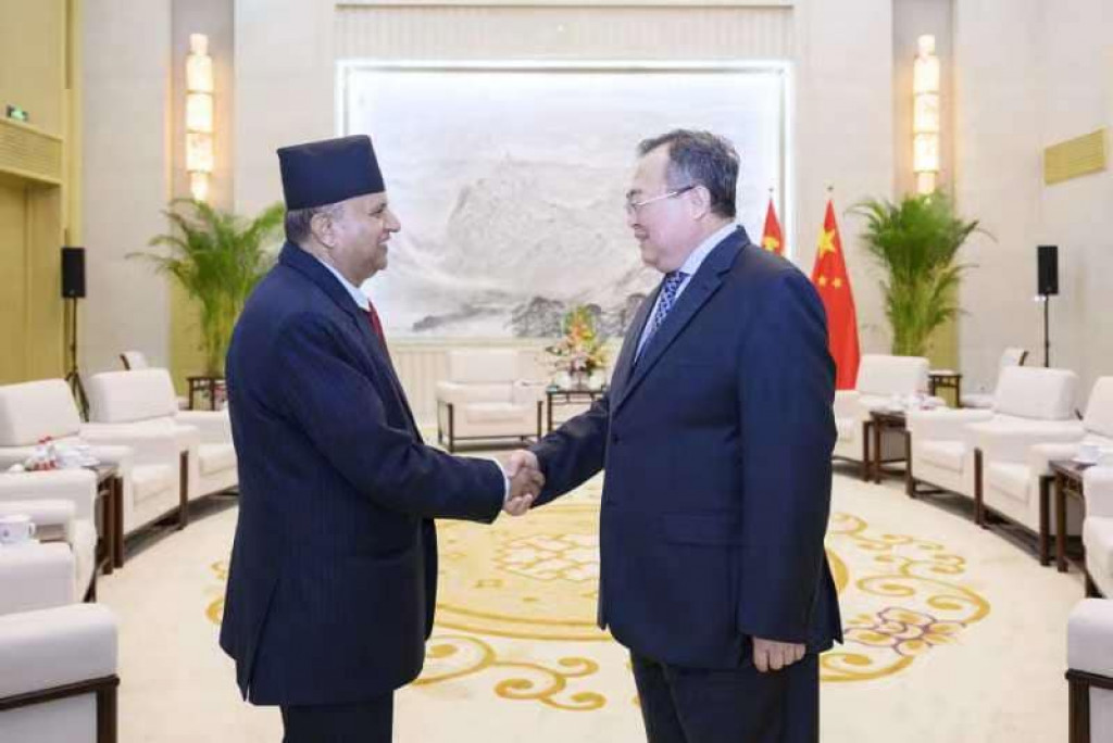 UML leader Pokhrel meets CPC foreign department chief Liu in Beijing