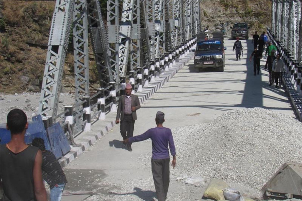 Myagdi, Sept 24: A motorable bridge constructed over the Begkhola stream at Raghuganga Municipality-1 in the district has come into operation. The bridge is constructed as part of the Beni-Jomsom-Korala roadway. It falls under Kaligandaki corridor, a national pride project. A bailey bridge over the stream was swept away by the floods seven years back, thereby causing sheer inconvenience and risk to the travelers and vehicles. Supervisor of Beni-Jomsom-Korala road project, Indra Singh Sherchan, informed that the motorable bridge came into operation since yesterday. “Although access roads on either side of bridge are yet to be finalized, transportation was operated for now. With the construction of bridge, there is no risk of floods anymore.” The initial cost of the bridge was Rs 83 million. The construction of the bridge was begun two years back. It is 70-meter long and 11-meter wide. Although the deadline of the undertaking was end of 2080BS, it was constructed before deadline, according to engineer Ashik Rijal from West Sector Office of Road Department. BOKI/Himalayan JV was contracted for the construction. Earlier, two such motorable bridges were constructed under the Beni-Jomsom-Korala roadway- one at Mahabhir and another at Pokharbagar.