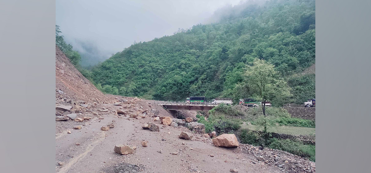 Triveni (Nawalparasi), Oct 4: The Kaligandaki corridor has been obstructed due to landslide triggered by incessant rain. Deputy Superintendent of Police (DSP) at the District Police Office Nawalparasi (Bardaghat-Susta-East) Bed Bahadur Poudel informed the Kaligandaki corridor was completely halted due to landslides in the Nawalpur section of the corridor. Due to landslide in Bulingtar rural municipality-1, Raatbise, the Kaligandaki corridor has been completely disrupted since last night. He said it was difficult to immediately clear the debris and resume transport operation because of incessant rain. Through this section, vehicles are operated from Gaindakot to Bulingtar and Baudikali of Nawalpur, Rampur of Palpa, Tanahun, Pokhara and Syngja among others. DSP Poudel further said vehicular operation has become difficult as the incessant rain has caused damages to the rural roads of mountainous region of the district. Likewise, the Maldhunga-Beni road along the national highway linking Myagdi and Mustang with national network has been obstructed.